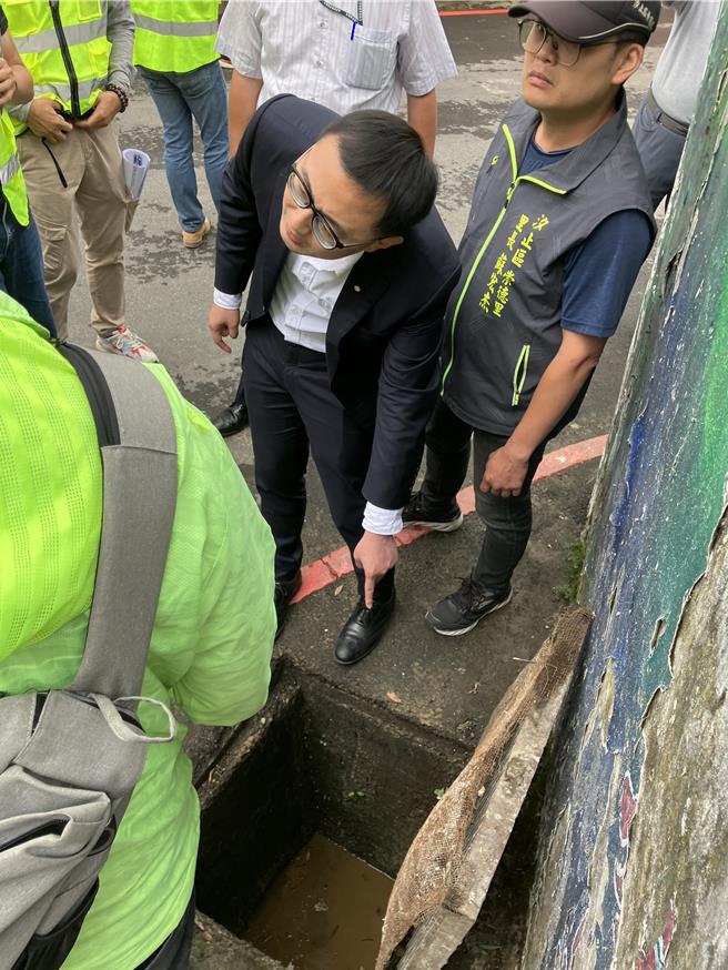 廖先翔邀集相關單位到汐止積水路段會勘。(廖先翔提供)
